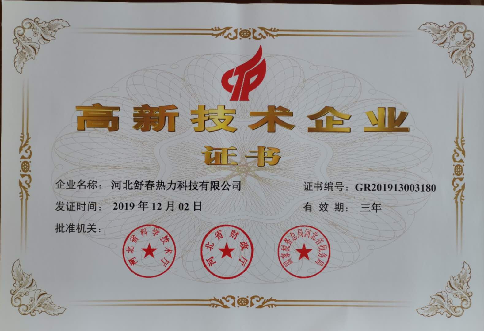 河北舒春熱力科技有限公司榮獲河北省高新技術(shù)企業(yè)稱號